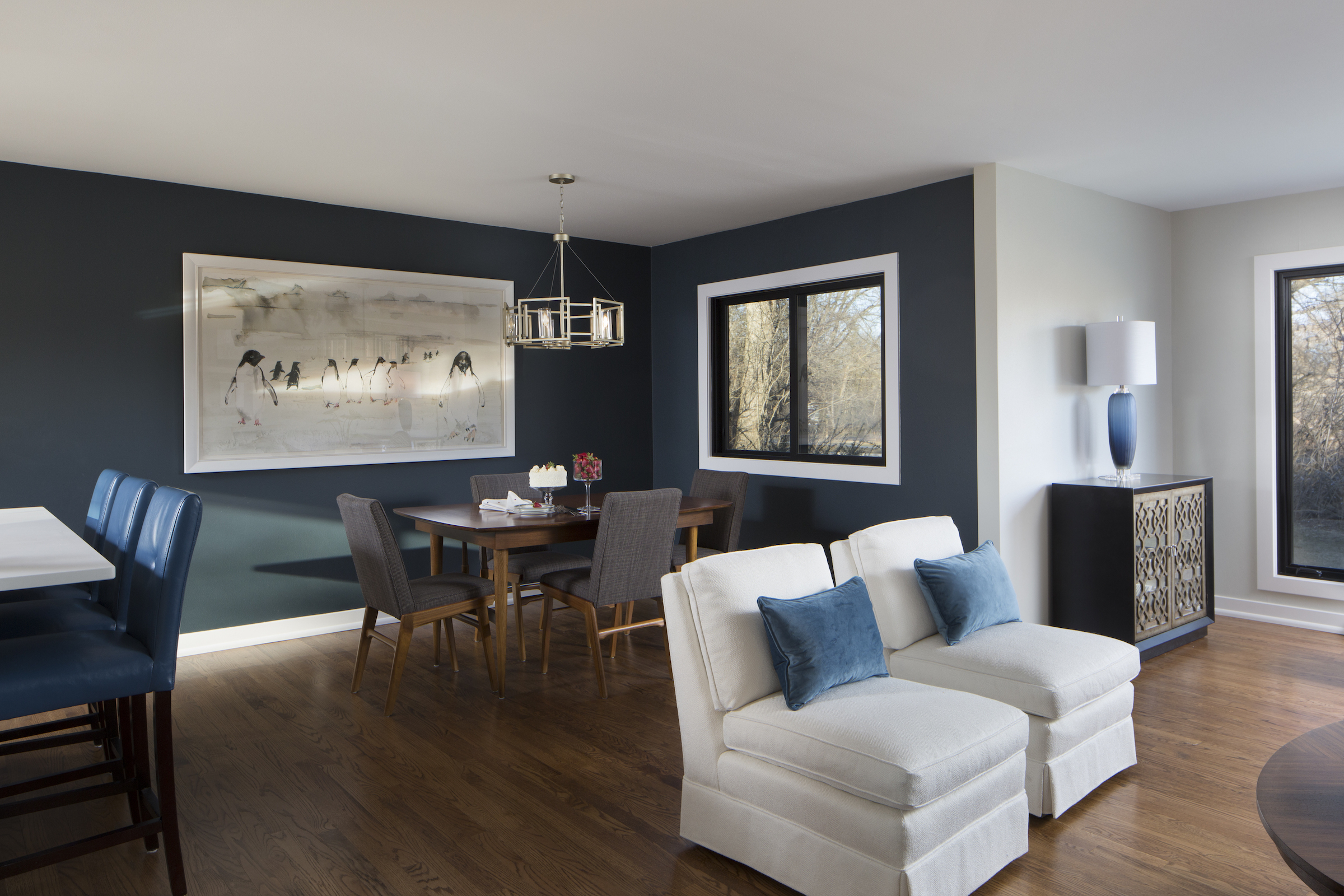 Result: This mid-century style is very simple and clean with rooms featuring clean lines and a simplistic, functional style. The family bought the house to be closer to their children, and were very happy with the results.